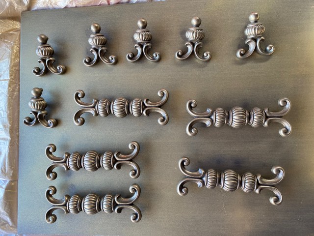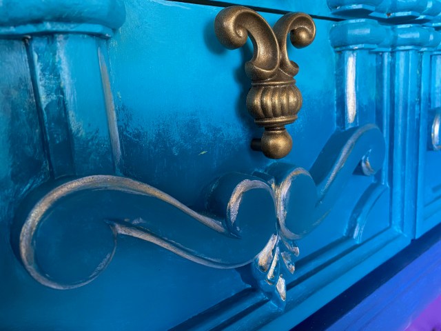 After I was happy with the way it looked, I used a small brush to paint some subtle metallic accents onto the dresser.